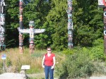The day before the big trip we went to Stanley park which is on the waterfront, and tried to take pictures of the floatplanes taking off but they were too fast for us. The park had a whole lot of totem poles some of which Pauline is standing in front of.