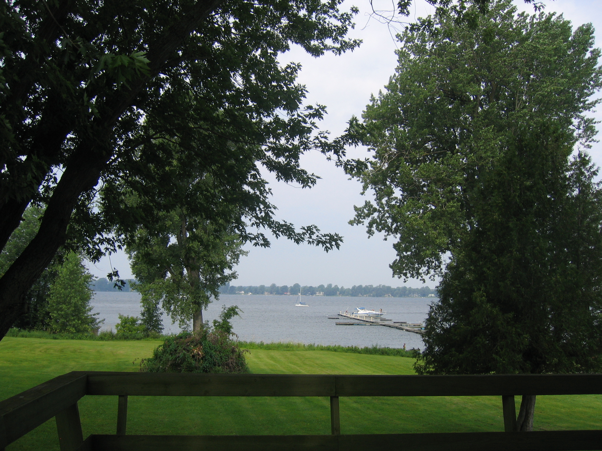The drive north to the border from Liberty was very pleasant, lots of forests and fairly light traffic. We stopped near Plattsburgh for lunch, and then drove until we hit the border about 5 hours after we’d set off. The Canadian border guard was mostly interested in how much money we were bringing with us for some reason. Once across into Canada we asked Homer to find us some accomodation, and by a piece of luck he directed us to a lovely little Auberge, or Inn, on the river Hudson, surrounded by cornfields in a tiny holiday village. We got the last available room. There was a veranda overlooking the river, a pool, a small bar and a kitchen. Our room also opened out onto it’s own little veranda overlooking the river. The people were very kind and tolerated our lamentable french with plenty of smiles. Their old black dog, Jessie was friendly to all the guests and kept the staff busy throwing her ball. Pauline had a swim, we sat on the deck and read our books, had a very nice dinner and all in all it was most satisfactory. Next morning we headed off to Montreal airport. I was very grateful to the GPS navigating me through the Montreal traffic! We stopped for luch just near the airport at a place called eggsOeufs which served Quebec breakfasts which in my case consist of eggs, toast, pancakes, fresh fruit, sausages, baked beans and cretons which is a pork spread that goes on your toast. Yummy! We dropped the car at the airport and we were on our way to Paris.
