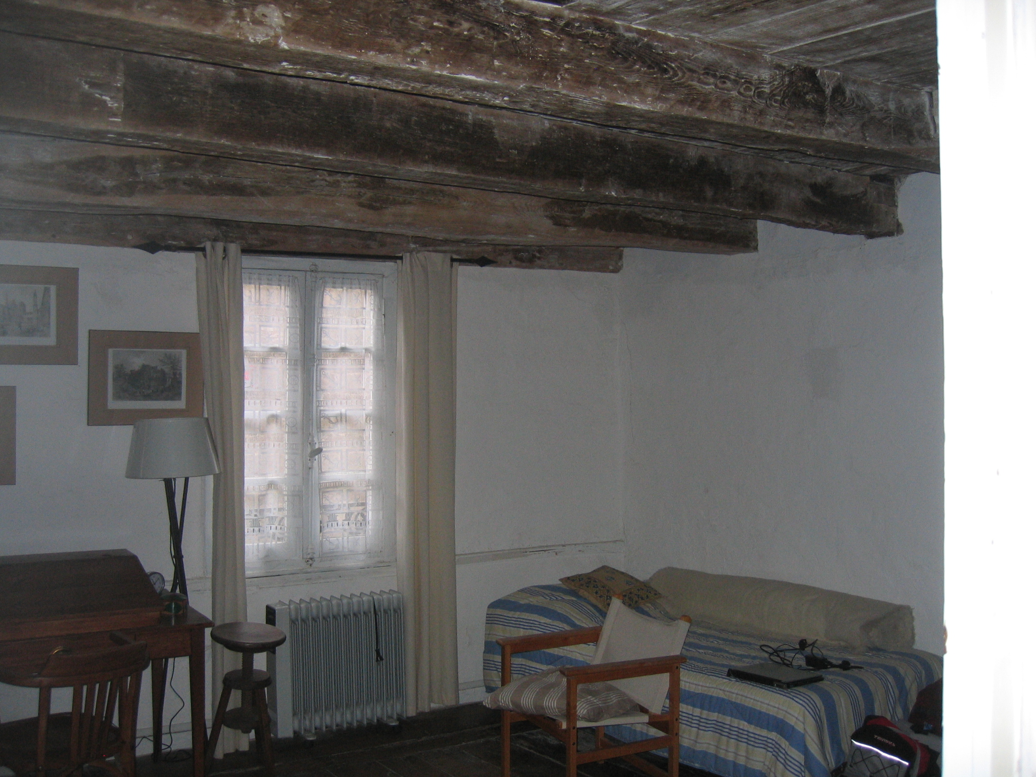 The house is great. It’s 17th century, three storeys with a bathroom on each floor, rustic kitchen, virtually no straight lines on any of the floors or walls, wooden beamed ceilings, wireless high speed internet access. We are very pleased with it.