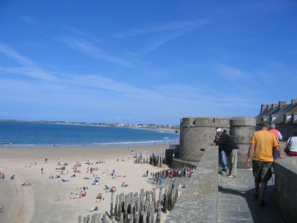 St-Malo is a walled port city on the English channel. We stayed in a very nice little hotel called the “hotel de la mer” in Saint-Servan about 10 minutes walk from St-Malo. It was ideal, we could park our car right outside, the people were very friendly and the price was quite reasonable, so I can recommend it. After a bit of a rest, we walked to St-Malo and in through one of the doors in the wall. The city was 80% destroyed in WWII, half by the germans, the other half by the US. The Malouins decided to rebuild the town exactly as it had been using the original blocks of stone where possible. The reconstruction was only completed in the 1970’s but they did a remarkable job. Here’s a photo: