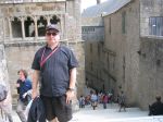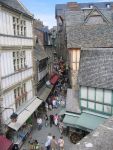 We arrived along the causeway to the island about 11 in the morning and were ushered into an enormous car park, parts of which are submerged when the tide comes in so you have to watch the time! The tides apparently can run as fast as a horse, and the islet is also surrounded by quicksand in places, so you have to be careful where you walk. Anyway, we walked to the portal in the outer wall, and entered the town, which has a very narrow street spiraling upwards towards the abbey, surrounded by tourist shops and restaurants and crowded with tourists.