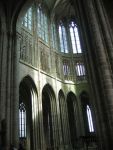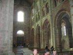 It’s quite good fun though and the buildings themselves are charming. There is a little church halfway up with a cemetary. Apart from the monks in the abby, there are about 50 people living in the town itself. We gradually made our way up the spiral, stopping to look at postcards etc, and to have a sandwich sitting on the steps near the town church. Then we entered the abbey itself, hiring english language electronic guides. The views from the top were most impressive, although Normandy is very flat as you can see from one of the pictures. Inside the construction consists mainly of romanesque arches on top of massive pillars and characteristically thick walls, presumably why the structure has lasted such a long time. It was interesting to see the places where monks have lived and slept and cooked and prayed for over 1000 years. It is an exceptional place to visit.