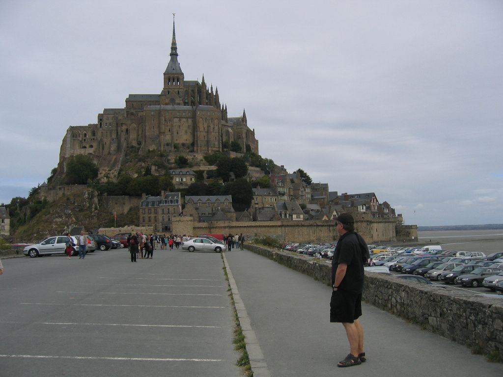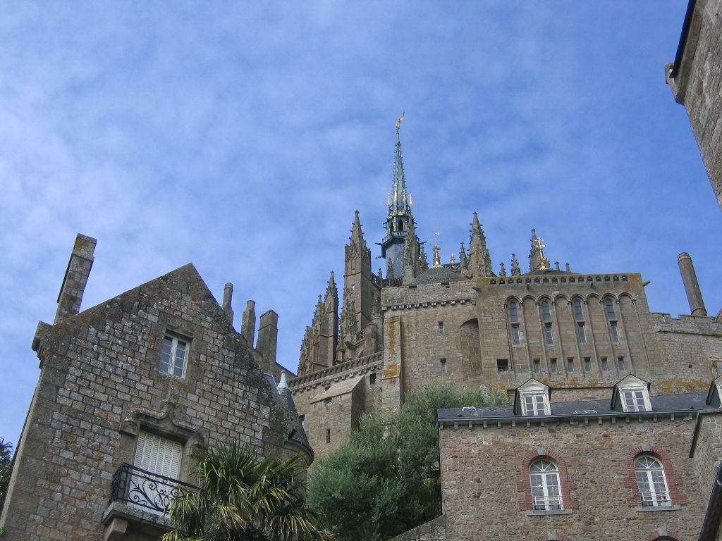 We arrived along the causeway to the island about 11 in the morning and were ushered into an enormous car park, parts of which are submerged when the tide comes in so you have to watch the time! The tides apparently can run as fast as a horse, and the islet is also surrounded by quicksand in places, so you have to be careful where you walk. Anyway, we walked to the portal in the outer wall, and entered the town, which has a very narrow street spiraling upwards towards the abbey, surrounded by tourist shops and restaurants and crowded with tourists.