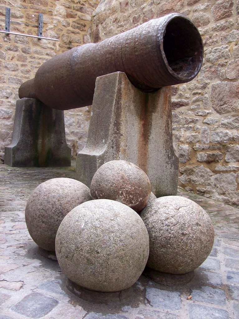 Le Mont-Saint-Michel is a rocky tidal island in Normandy. In 708 St Michael the archangel appeared to St Aubert, the bishop of Avranches, and instructed him to build a church on the islet. Aubert repeatedly ignored the angel’s instruction, until St Michael burned a hole in the bishop’s head with his finger (apparently.) A shrine was built in the 8th century, and the first church was completed in 1144. By the 13th century, hundreds of Benedictine monks lived there. During the Hundred Years’ War (1337 – 1453) the English made repeated assaults on the island but were unable to seize it, partly because of the abbey’s improved fortifications. Les Michelettes, two wrought-iron bombards left by the English in their failed 1423–24 siege of Mont-Saint-Michel, are still displayed near the outer defense wall. (With thanks to wikipedia for the info.)