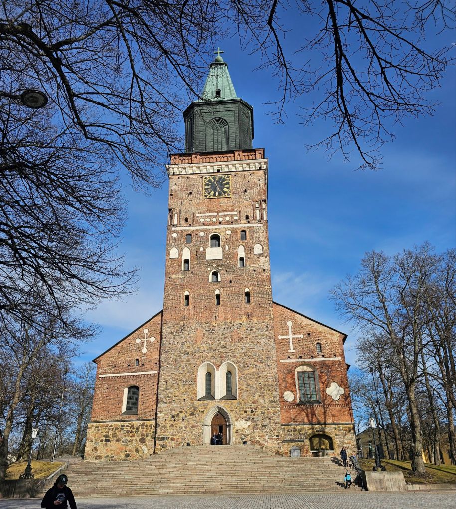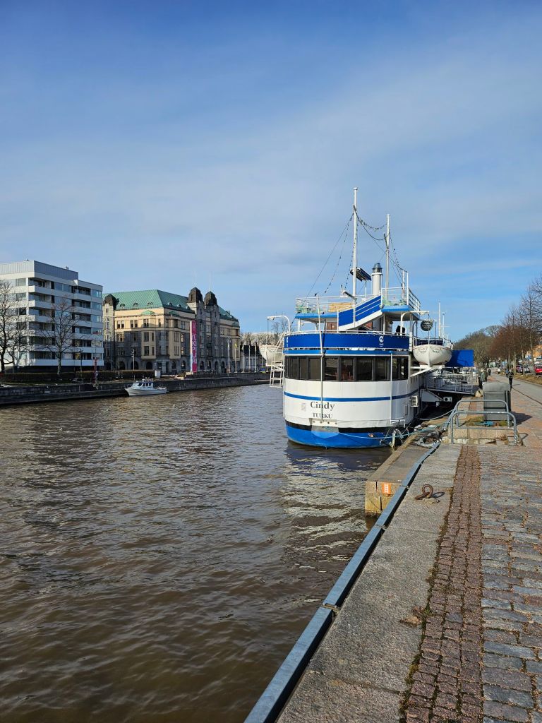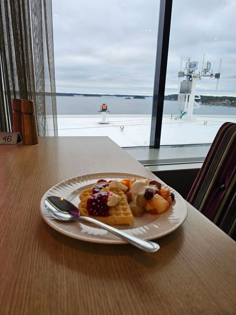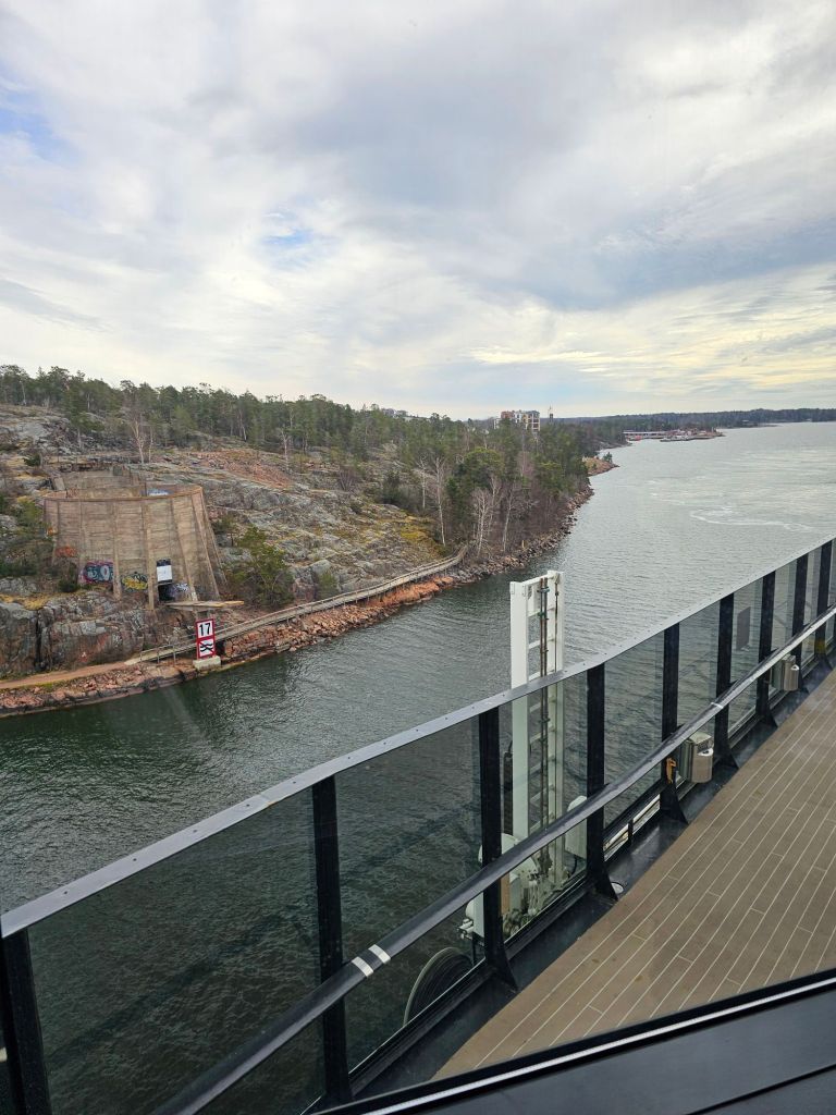 We had to get the bus from Stockholm central at 6:30 am which would have been no problem if we hadn’t slept through Paulines alarm at 5:45. Luckily I woke up at 6:07 and we just made it. The Viking Lines ferry “Grace” is absolutely enormous, we had a nice cabin and the cost was 30 euros each which is not bad for a 10:30 hour 320km voyage. Sailing through the archipelago on the way out takes hours and is beautiful. There are hundreds of little islands with people’s holiday houses on them.