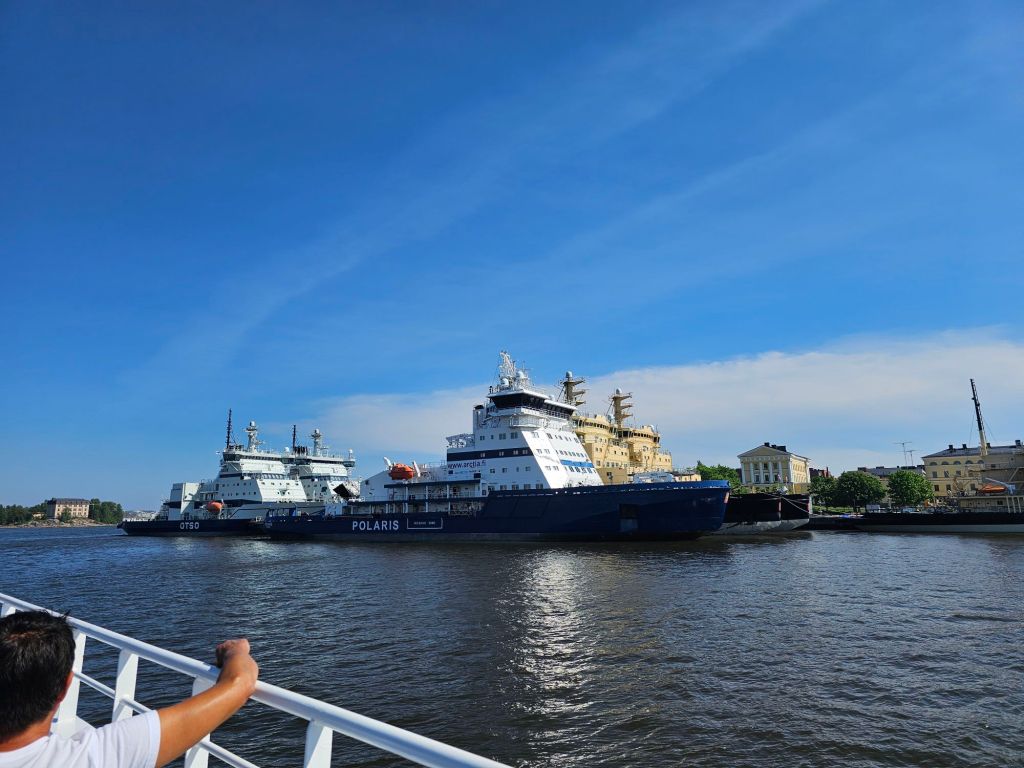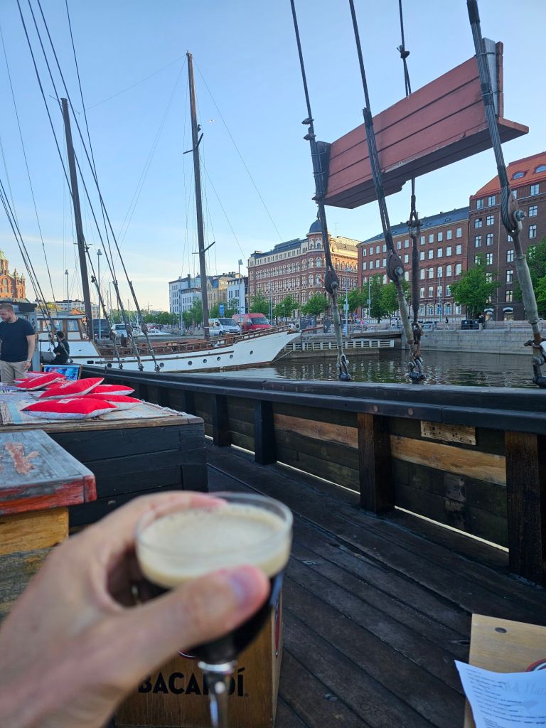 Cocktails on the three masted schooner Jan Mayen We met up with a friend at Teurastamo and had icecreams, they even had icecreams for dogs.Sumu really enjoyed his icecream!So did weCocktails on the schooner, was a pleasant way to end the evening.Jan Mayen, built of oak in 1914 in Fredrikshavn, Denmark. She was used for smuggling alchohol from Sweden to Finland during prohibition, and was confiscated by the Finnish government, sailed under a Finnish flag for 90 years. She was an artic fishing vessel for a while, then a houseboat and now is owned by the Suomen Maritime Historical Sailing AssociationUspenski cathedral inaugurated in 1868It’s quite spectacular inside as wellWindows95man was the Finnish eurovision contestant, didn’t win unfortunately but was very amusing so I bought the tee shirt.Icebreakers on their summer holiday We had some nice dinners while we were here. This is a Cuban paella. We saw some baby geese while visiting Clare on her island Lauttasaari. It was a very nice visit, thanks Clare.The trams are coolThe public library, oodi, is quite dramatic. There’s even a cafe on the deck