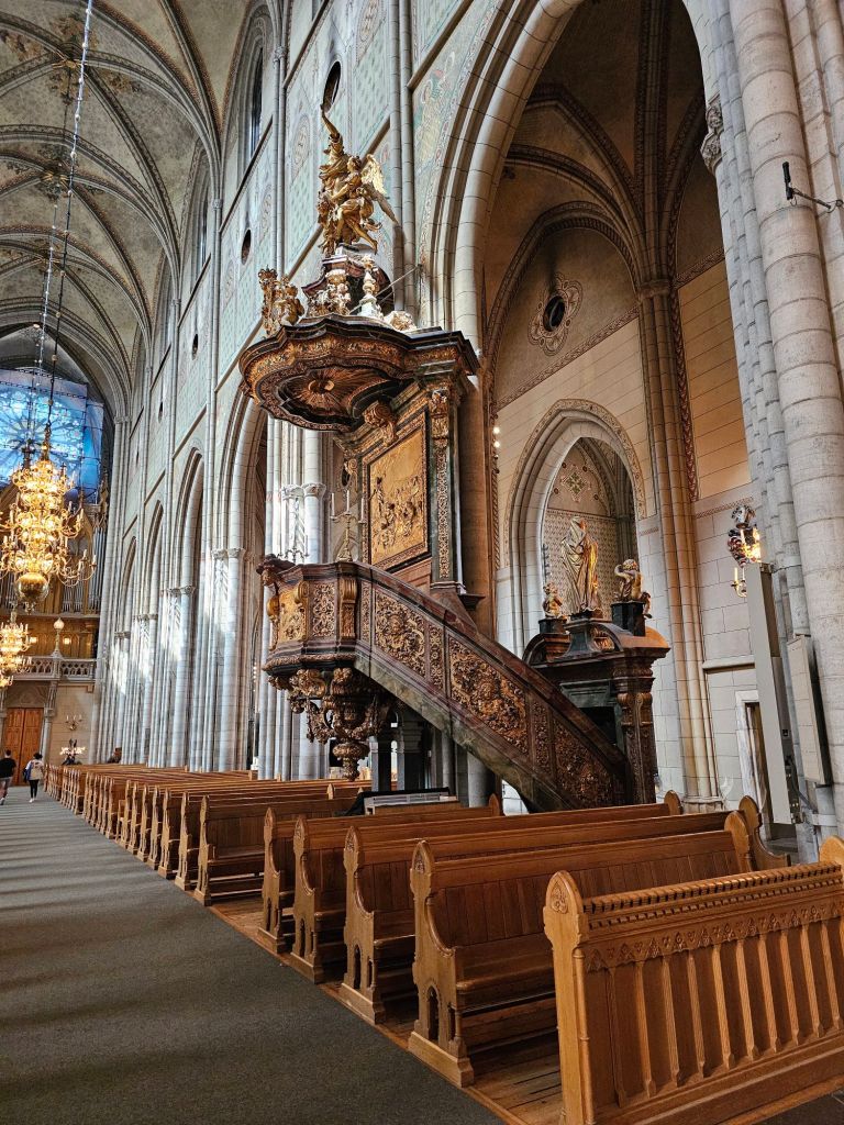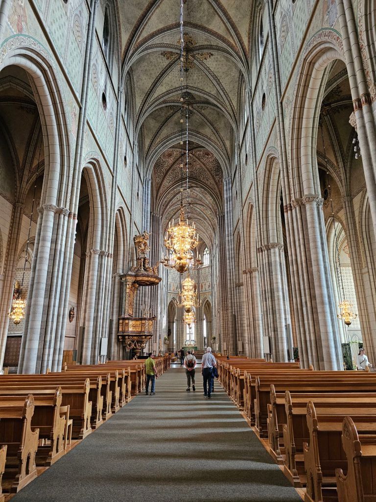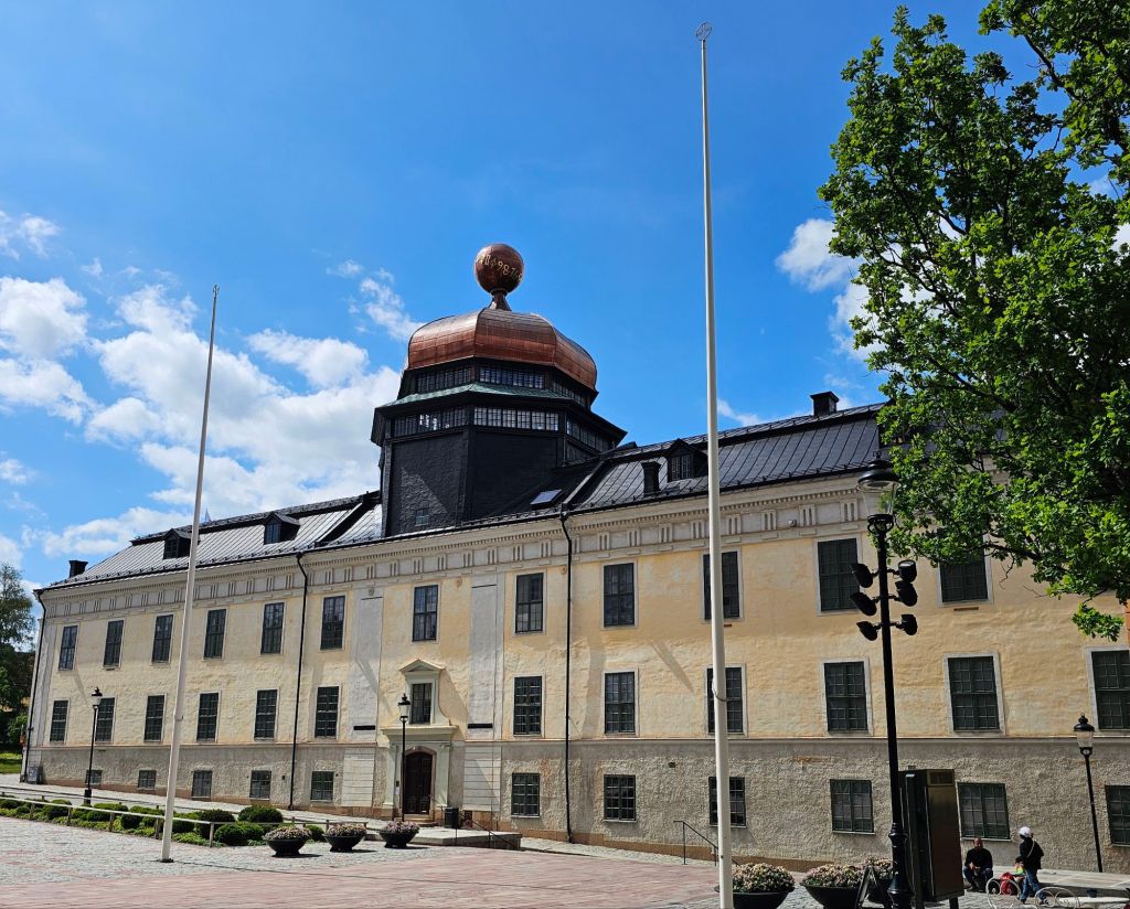MEDIEVAL HOUSE, DURING CATHOLIC TIMES RESIDENCE OF AN ECCLESIASTICAL DIGNITY, WHO COULD WALK FROM THE CATHEDRAL TO HIS HOUSE THROUGH A PORTAL IN THE CEMETERY WALL: THE NICHES ARE PRESERVED IN THE GABLE TO THE CHURCH IN 1622 THE HOUSE WAS PURCHASED BY JOHAN SKYTREE AND OFFICIAL RESIDENCE WAS DONATED TO THE OWNER OF SKYTTE INSTITUTED THE SKYTTEAN PROFESSOR OF PEOPLE AND POLITICAL SCIENCE, THIS FUNCTION HAS ALWAYS HAD THE HOUSE AND IS ALSO A POLITICAL SCIENCE INSTITUTION: IN 1709, SKYTTEANUM UNDERGOED A THOROUGH RESTORATION UNDER PROFESSOR SKYTTEANUS JOHAN UPMARK AND GOT ITS PRESENT, HIGH BAROQUE CHARACTER.”