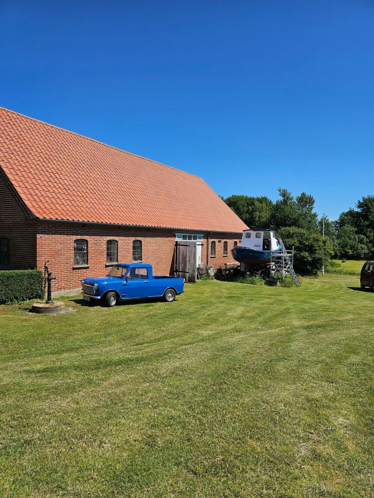 Lunch was quite flash, unexpectedly so.Getting ready for the off. The bikes were 7 speed, typical Danish bikes. We liked the upright riding position but they were heavy.I was surprised to see this rather nice mini ute on the way up the island.The guy was working on his boatIt’s very pretty here.
