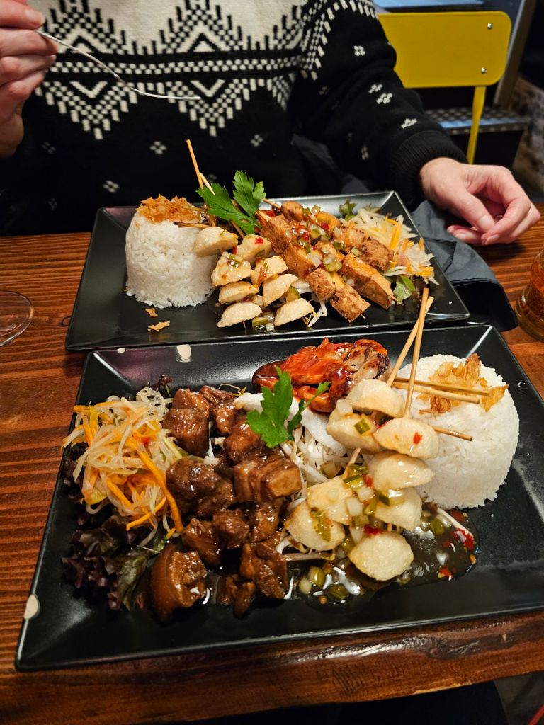 We left Paris on the 7:15. Frosty morning.!Waiting in Karlsruhe for the train to Berlin.Made it by 6:30 pm!There was a very nice Filipino restaurant next door to the hotel, so we had to try it out, joined by our friend Alex who arrived from Munich about half an hour after us.