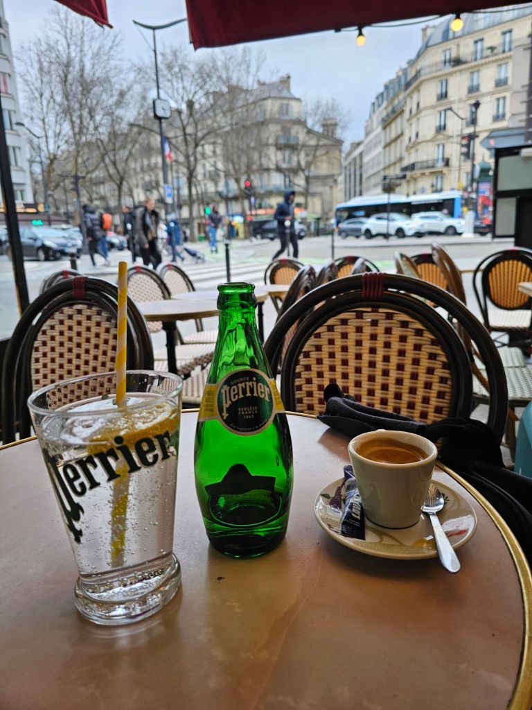 We had an hour or so to wait for the Eurostar to London so we had a coffee at our favourite cafe near the Gare du Nord.It’s a bit of a kerfuffle going through the border and security but once you’re on the train it’s next stop St Pancras.