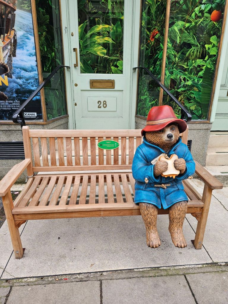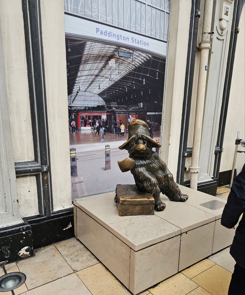 We are staying in a little hotel in Paddington. We both really like Paddington, partly because there’s a statue of Paddington the bear at the station but mainly because there’s lots of nice little restaurants and cafes and it’s central but doesn’t feel like you’re in an enormous city. Here for a few days, off to Cardiff on Friday.