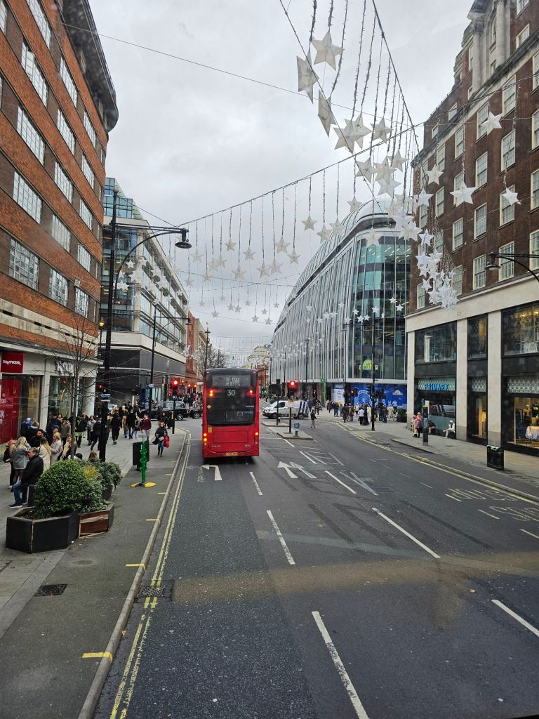 It’s a big city London, and Google maps shows things in miles so I always think it’s not as far as it really is. I do like wandering around looking at the shops and the people. Busy down Oxford Street as you’d expect. Tomorrow hopefully Pauline will be feeling a bit better and can join me.