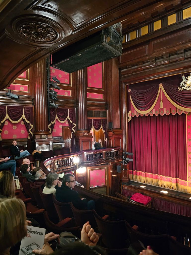 We took the Great Western Railways to Cardiff on Saturday to visit our friends Kathryn and Mark, back on Sunday. Nice to see them again after we bumped into them in Athens!This week we’ve spent a bit of time on double decker buses. It’s a good way to get around as you get a view.Driving down Oxford Street221b Baker StreetNorth London canalWe had lunch in Soho and shopped in Carnaby StreetI liked this pub in the west end somewhereI visited the Science museum while Pauline did some more serious shoppingEarly Soviet computer, Science museum.Rover turbine powered car from 1950. They were very forward thinking in those days.We went to see “The Mousetrap” in the west end. Oldest running play, in its 73rd year. It was very well done.On the way back home we walked along Regent Street enjoying the lights.Today we took various trains to Hampton Court palace, Henry VIII’s palace. I kept thinking about the song “I’m Henry the eighth, I am”The tiltyard.Pictures of Henry and some other guy. They reminded me of David Byrne from Talking Heads and his big suit.I presume this squirrel was doing his exercises.The palace on the banks of the Thames.