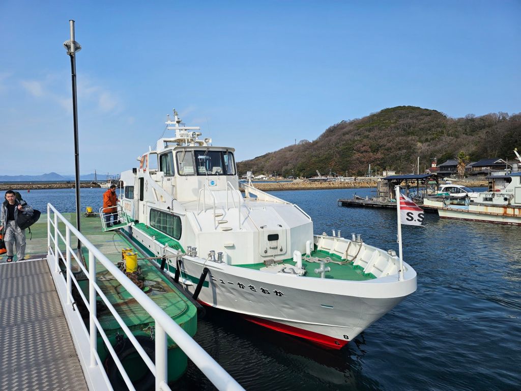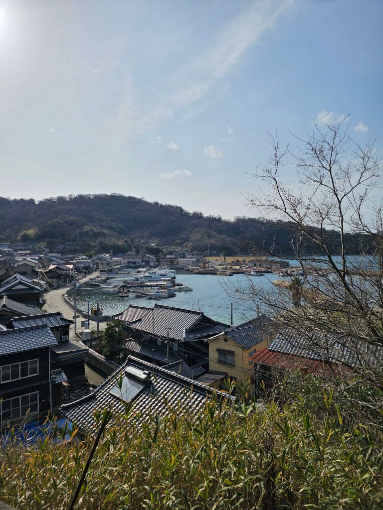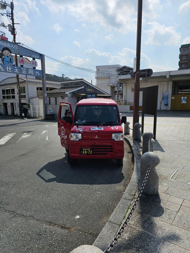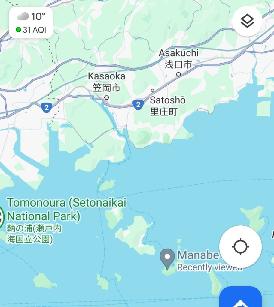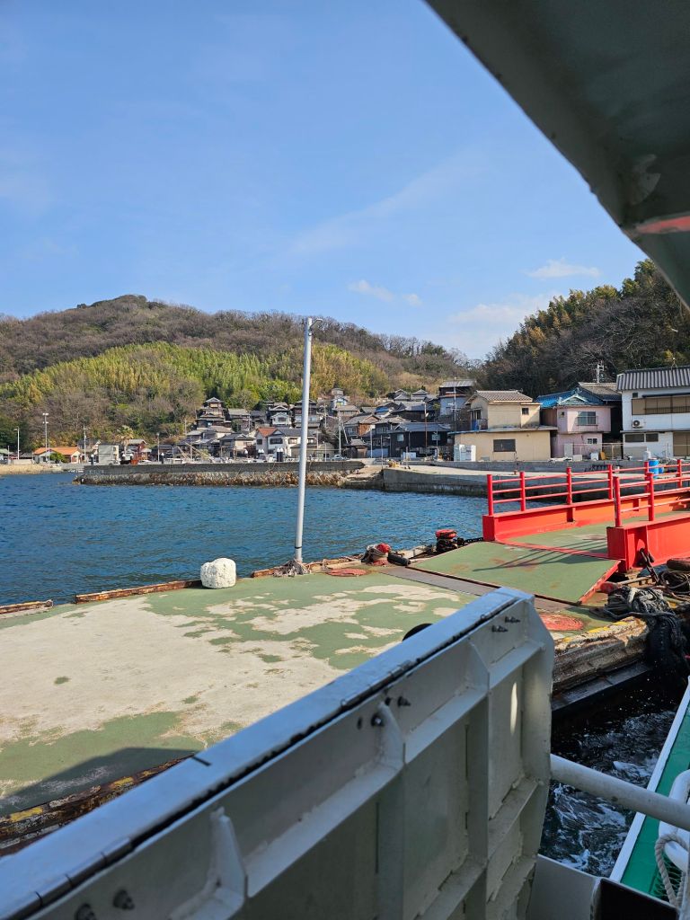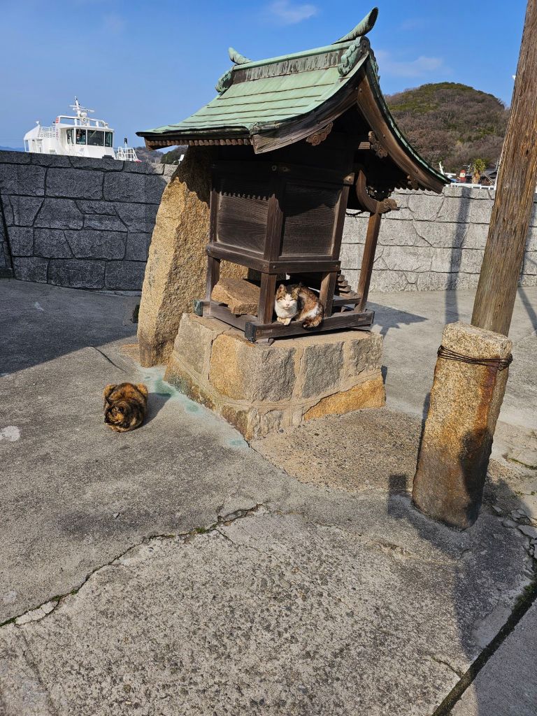 Japan Post IMiEV van, Kasaoka – I love these little vans!Kasaoka buildings This was the ferryLeaving Kasaoka We really enjoyed the hour long boat ride Arriving at ManabeSure enough, there were some catsIn the village, a shrineMore catsSome of the buildings were quite fally downyThere was a little path running around the islandThis is Santora, some sort of resort you can stay in on the island.The villageIt was a fast boat considering the size.manabe on the map
